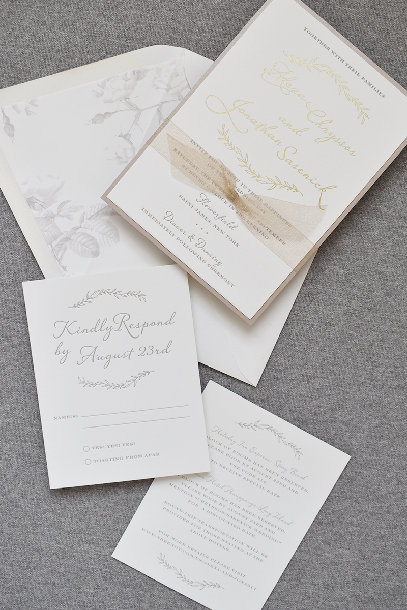 - Gold Foil Invitation with Sheer Ribbon photographed by Fat Cat Paperie